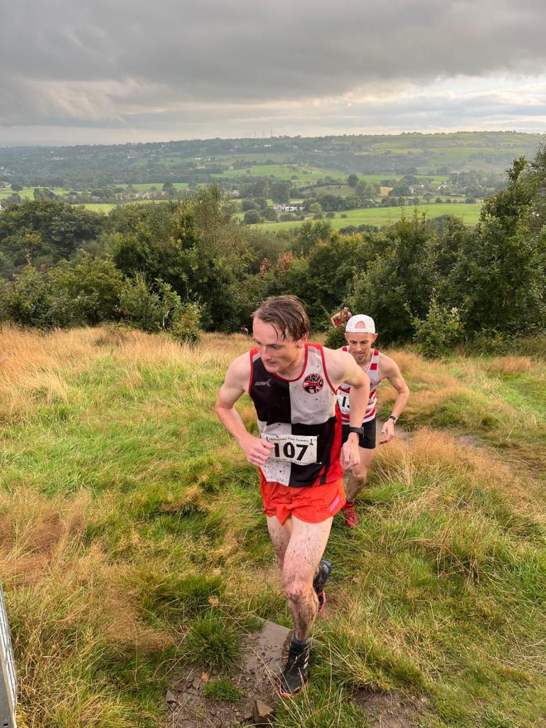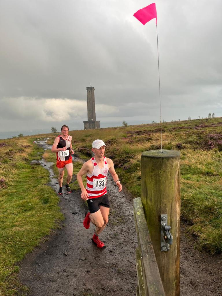 The rain stopped just in time for the 165 runners to take on this short and brutal 4 mile course. In the lead after the first long climb to the tower was Andrew Worster from Calder Valley with local Ben Coop from Bury AC following closely behind. Andrew led most of the race but with his local knowledge and as a previous winner Ben was always going to be a tough person to beat and by the time they came back past the tower for the final steep descent through the woods Ben had put his foot on the gas and there was a gap being formed. Ben went on to win the race in a time of 31.57, with Andrew finishing second in a time of 33.10.